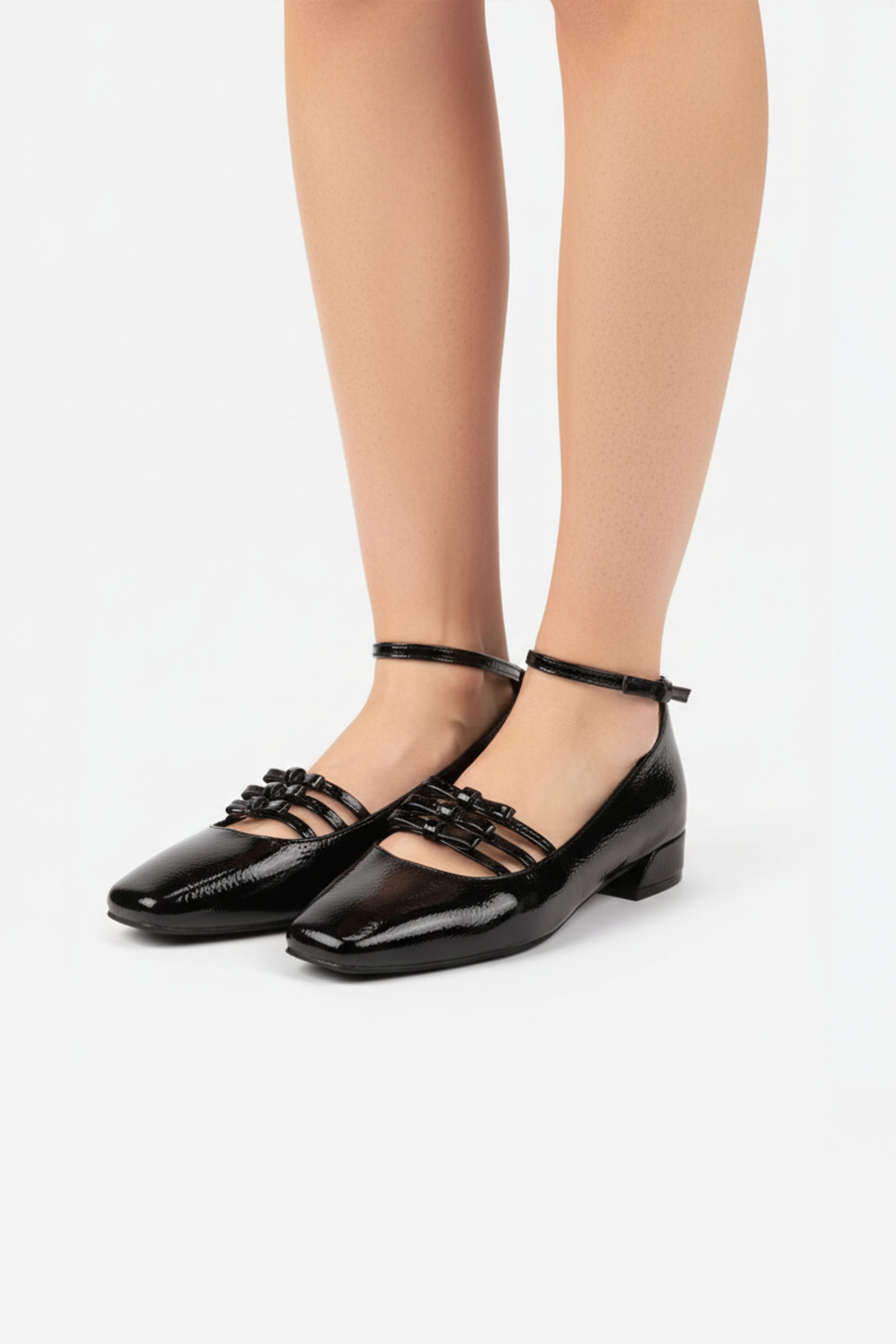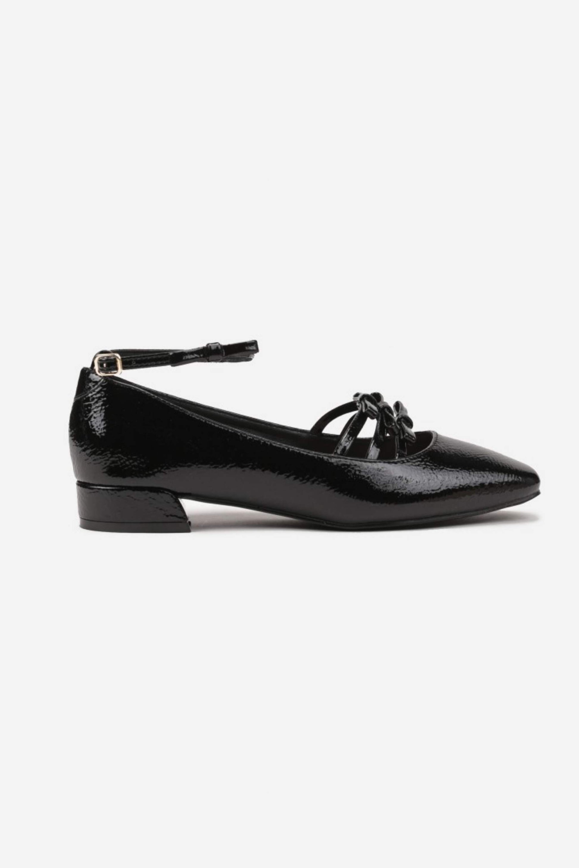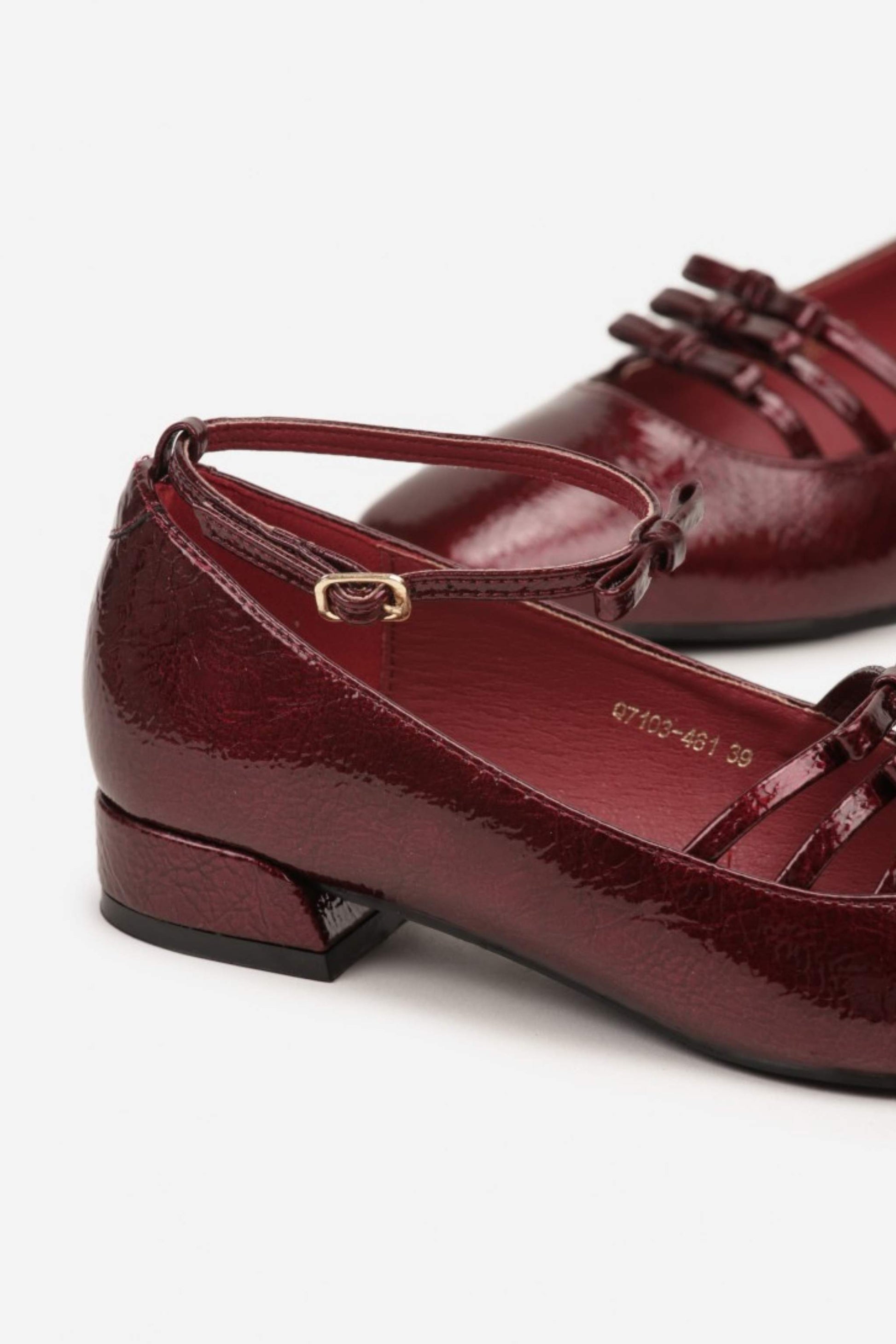 Model Trinity přináší moderní pojetí klasických Mary Jane. Tři tenké pásky na nártu vytvářejí šperkový efekt a současně drží nohu jistě na místě. Lakovaný svršek s vysokým leskem působí chic, jemně do špičky tvarovaná špičkaopticky prodlouží nohy a nízký podpatek zůstává pohodlný na celodenní nošení. Skvělé do práce i na večer – stačí přidat sako nebo saténovou sukni.