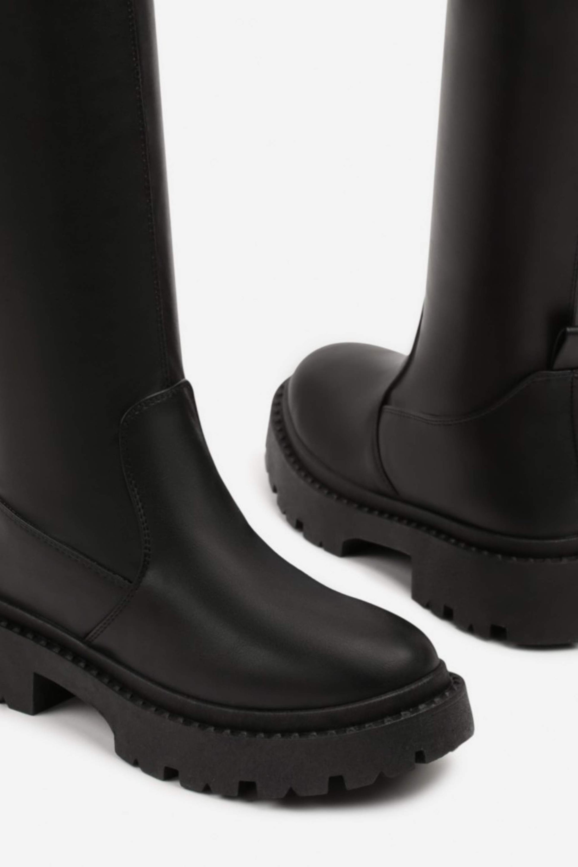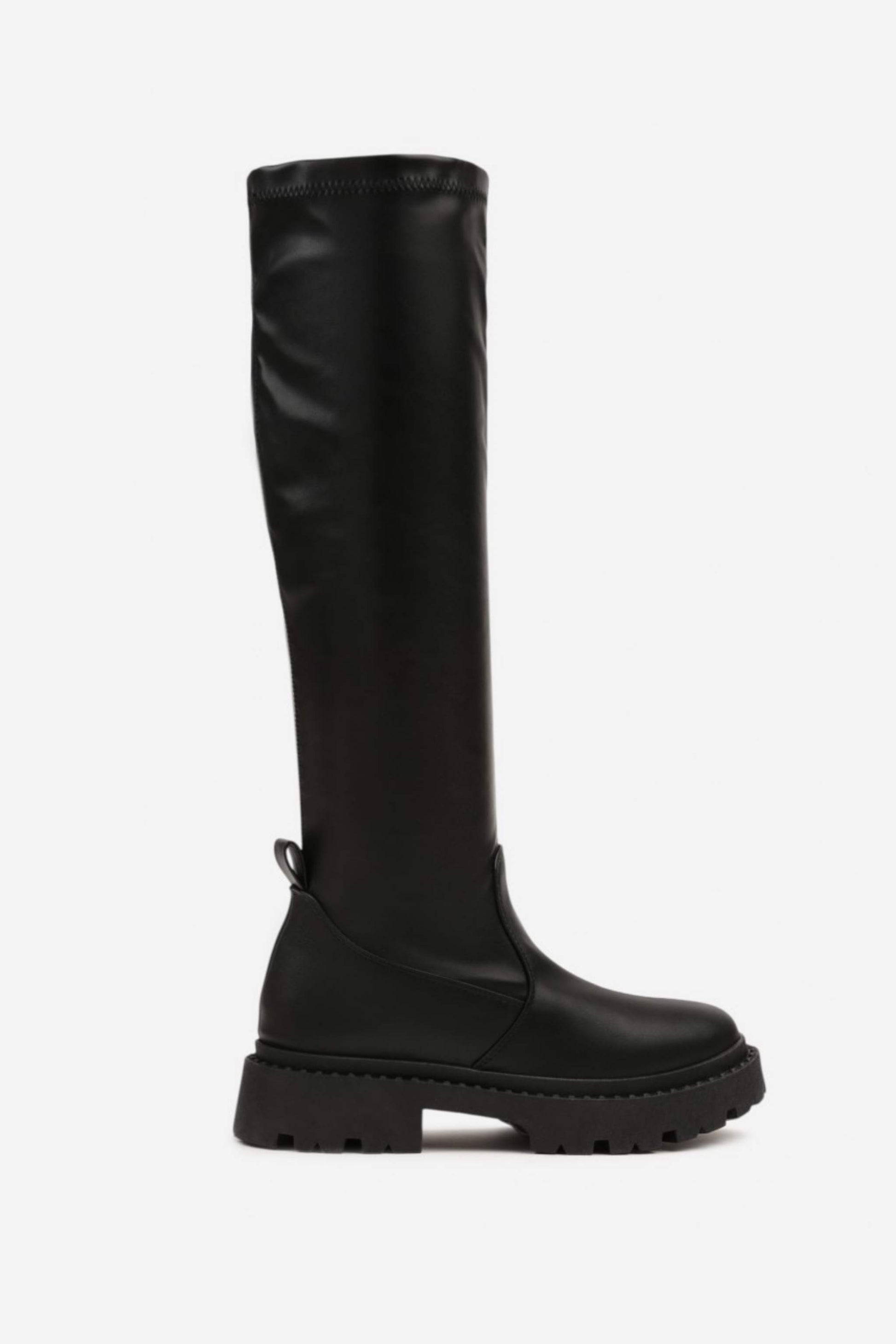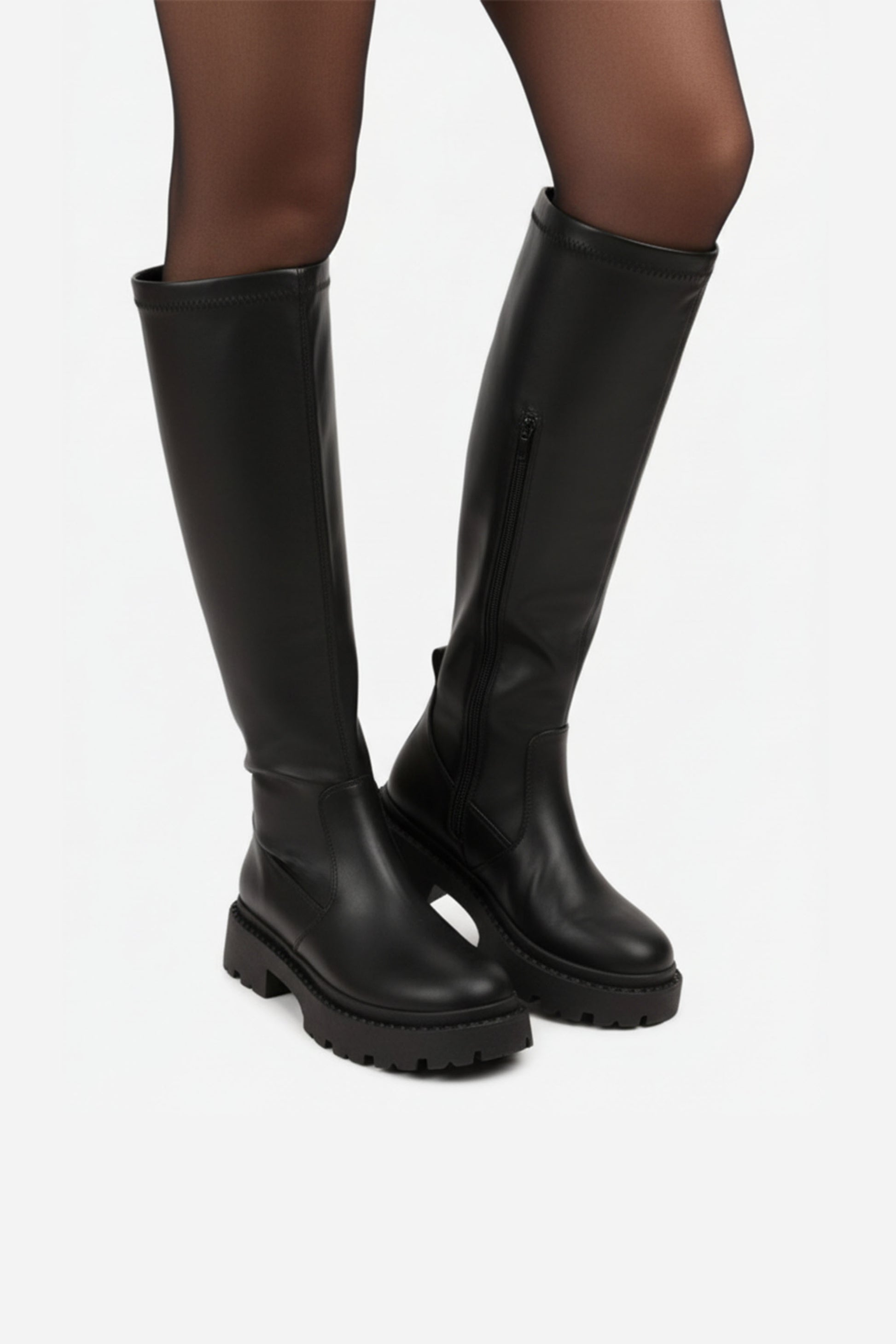 Kozačky Defy staví na minimalistické siluetě a praktických detailech. Strečová část kolem lýtka se přizpůsobí a opticky zeštíhlí nohu, robustní podešev s platformou tlumí došlap a drží jistotu na mokru. Kulatější/almond špička působí čistě a nadčasově. Boční zip usnadní nazouvání. Černá matná úprava se snadno udržuje a vypadá skvěle s kabátem, svetrovými šaty i širokými džínami. Ideální volba na podzim a zimu, když chceš pohodlí bez kompromisu ve stylu.