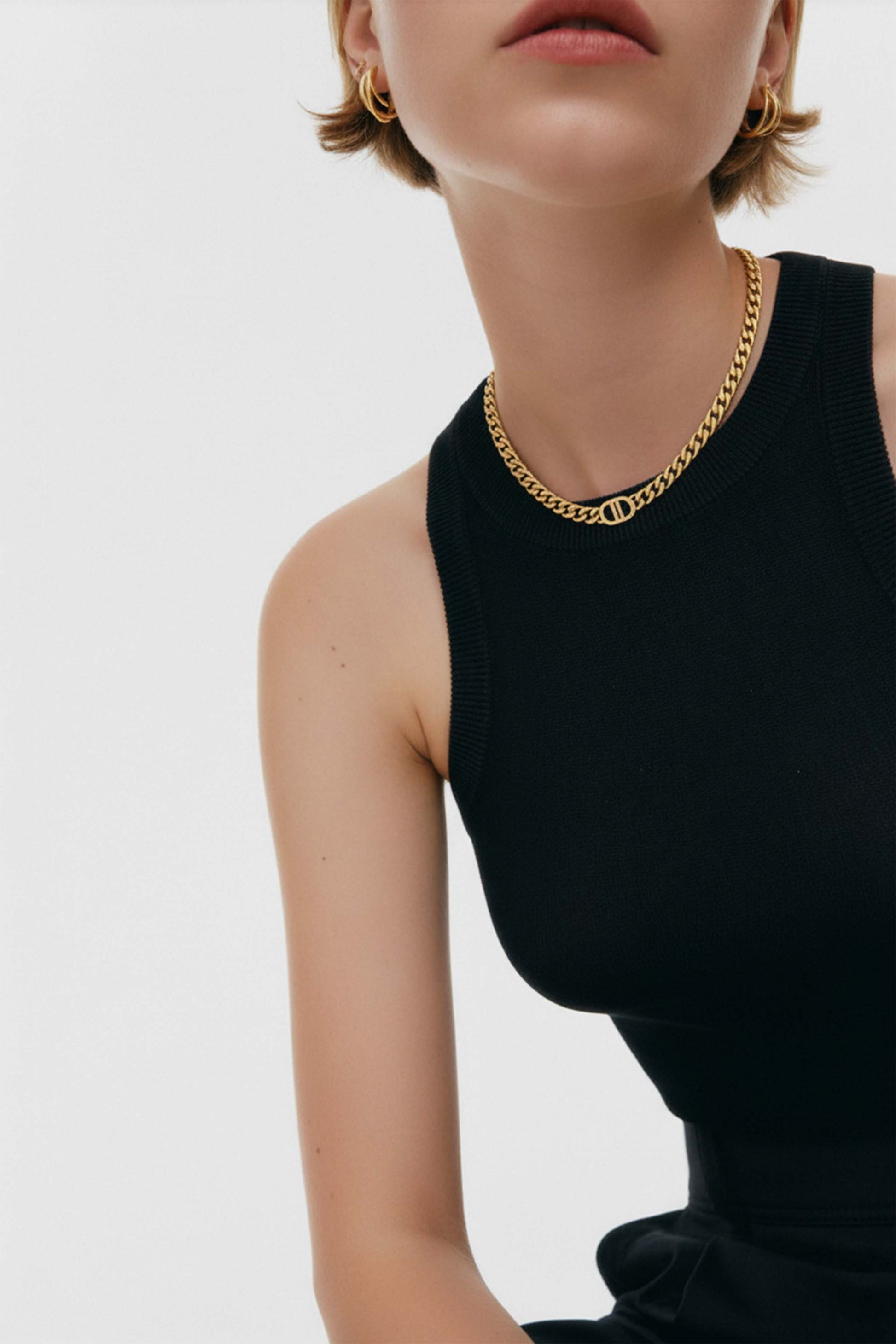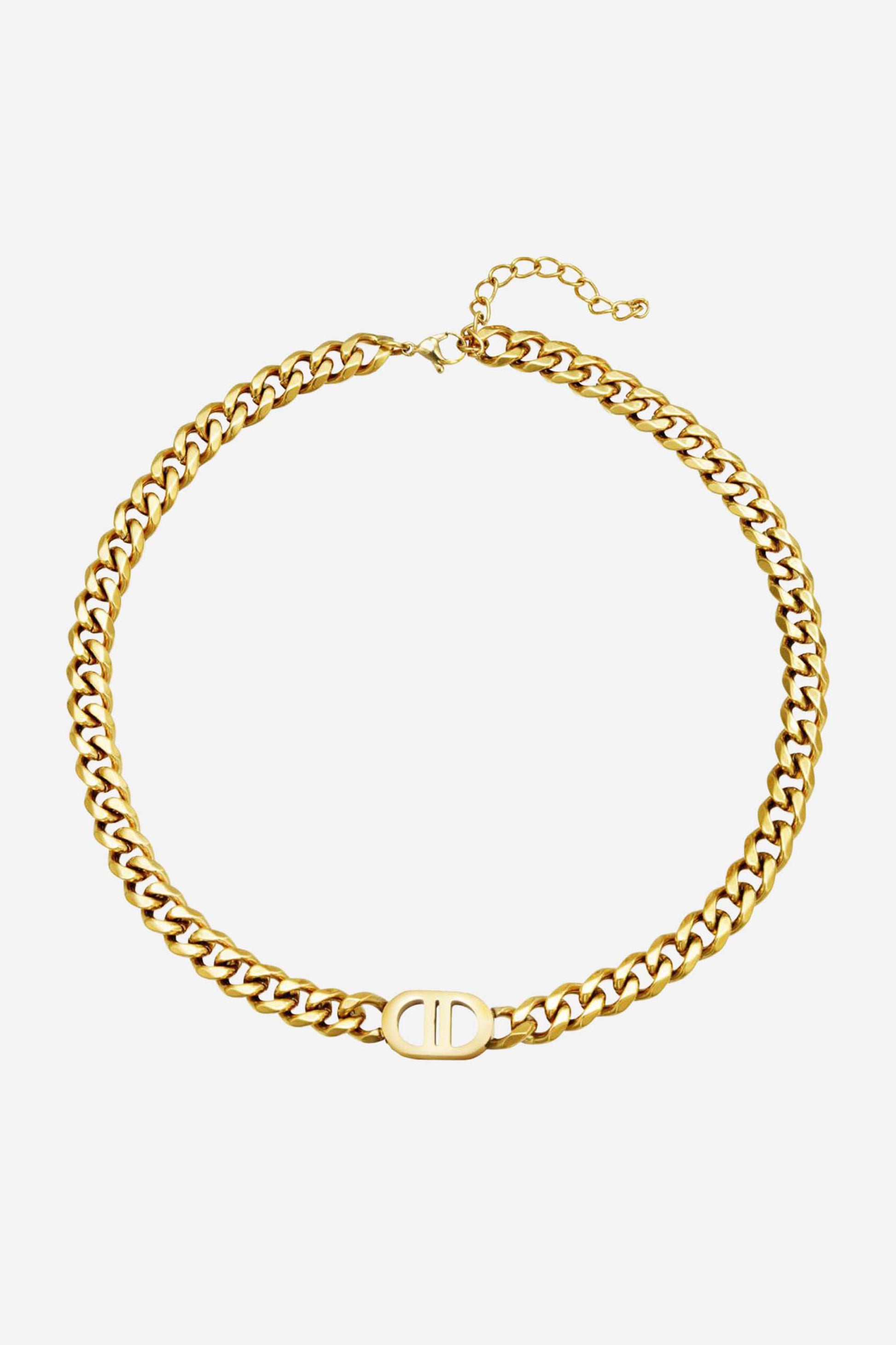 Pořiďte si náš bestseller: Tento robustní náhrdelník zaujme svým výrazným designem a jemným logem. Vyrobený z pozlacené nerezové oceli, nabízí nastavitelnou délku od 37 do 42 cm, což zajišťuje perfektní přizpůsobení.